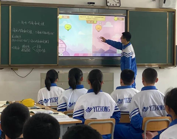 在課程中,來自遼陽市第十一中學的周英男老師展現了一場生動的數學課《三角形內角和定理》,周老師通過希沃錄播設備、希沃白板豐富的學科工具以及課堂互動工具讓遼陽一中學生與額敏縣六中學生同頻答題、同頻游戲,活躍的課堂氛圍讓相距千里的學生們,如同置身同一堂課,生動的互動教學也讓學生們對本節課內容理解的更加深刻。