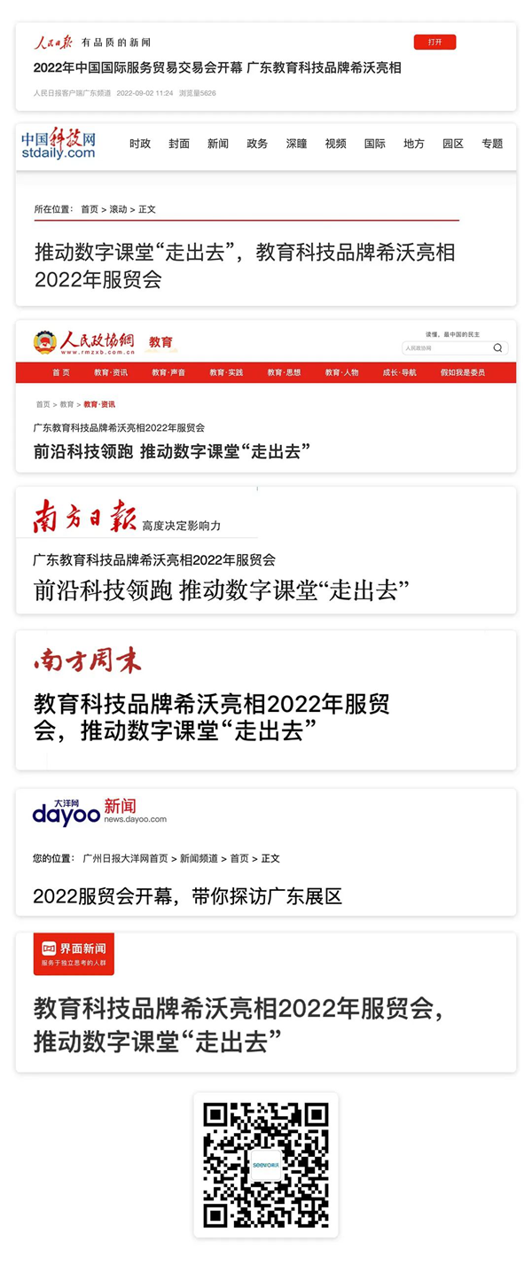 希沃本次參展更是獲得中央、省、市主流媒體及重要媒體的關注報道,包括人民日報、科技日報、人民政協網、南方日報、南方周末、廣州日報、界面新聞等。