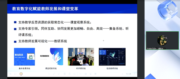 在演講過程中,魏振水結合實踐經驗,為與會者分享了希沃“三大系統”方案——課堂觀察系統、集體備課系統、信鴿教研系統的理念,并詳細展示了各系統如何滿足教師發展需求、推進深度學習的過程。