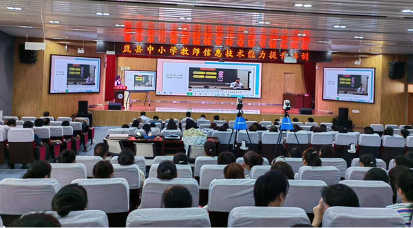 首先,由嵐縣教科局教育教學研究室郭元明主任進行開班致辭。郭主任表示,目前嵐縣的硬件設施基本齊備,嵐縣教育科技局一直在探索如何讓一線老師及學校管理層用好這些硬件,讓廣大教師實現課堂教學中的信息技術與教育教學融合,基于此方向,本次培訓實行全網直播,分設主會場、分會場,確保覆蓋全部校長及教師。