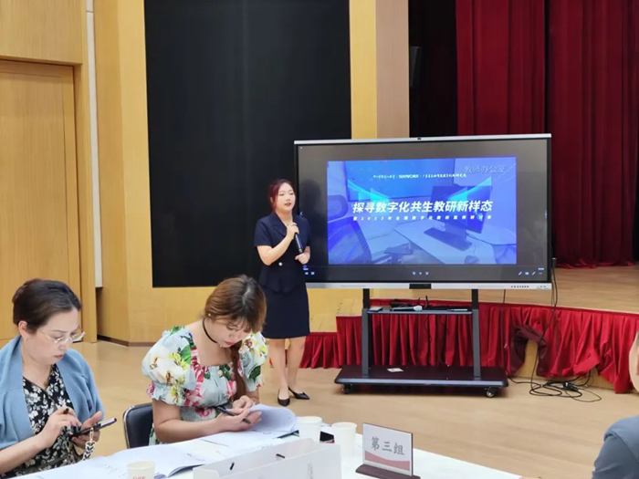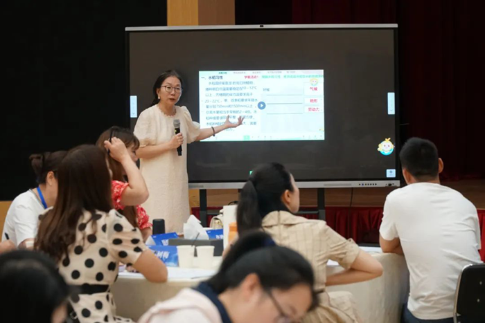 隨后,希沃培訓講師李霖進行《數字化環境下的應用工具與教學變革》的專題分享,分享圍繞著“巧用技術工具,精于教學設計,勇于重構課堂”,結合數字化教學理念及優質課例,分析技術與教學的融合應用。