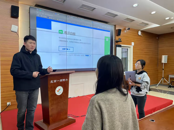 培訓上,希沃運營顧問杜禹建老師為參會教師們帶來了精彩的講解和實操演示。杜老師詳細介紹了希沃AI備課系統的各項功能,包括智能教案生成、智能課件制作、教學資源推薦等,并現場指導老師們如何高效利用這些功能進行備課。同時,杜老師還深入講解了希沃白板的使用方法,展示了其便捷的操作界面和豐富的互動教學功能,讓老師們對這款教學工具有了更深入的了解。講座后,老師們主動與杜老師就講座中的問題進行交流研討。