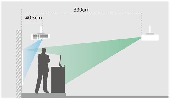 *在無干擾情況的希沃實驗室環境下,使用希沃超短焦激光投影投射在希沃電子白板上,405mm可投影80英寸大畫面。