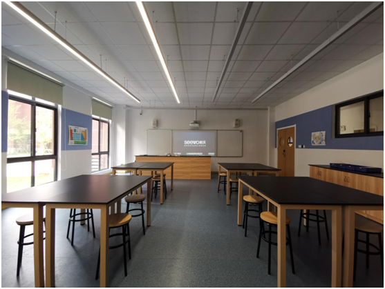 學生再也不用擔心老師身影阻擋投影畫面,廣闊的可視角保證教室兩側的學生可清楚觀看。每堂課的知識都能完美地展示在投影儀上,讓老師專心投入高質量授課。