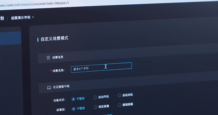 平臺支持自定義場景模式,可根據(jù)老師的不同需求,實(shí)現(xiàn)不同的個(gè)性化場景管控,充分滿足學(xué)校自主管理的需求。例如老師可以自定義上課模式,一鍵開啟教室燈光、空調(diào)、教學(xué)設(shè)備等。也可設(shè)置自定義放學(xué)模式,下課后一鍵關(guān)閉所有設(shè)備。