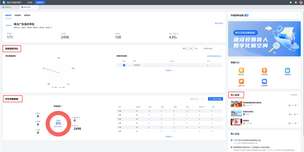 學�;ǘ夹^于2020年引入希沃魔方云提供的綜合育人方案,開展學生一體化管理建設。通過多場景多類型的智能考勤方案,進行了150余萬次考勤,人均293次,通過多角色多維度多數據的課堂評價,全校55個班所有課堂均開展考勤,通過完善的德育管理體系,創建80+類檢查項目,檢查超1.5萬條。從課前、課中、到課外,廣雅中學使用管理應用打造一體化的學生管理閉環,全方位提高學生日常管理的工作效率和質量。