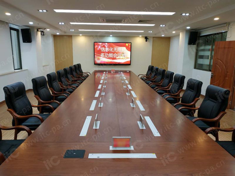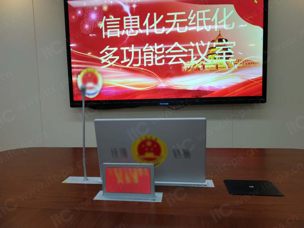 itc嚴格按照檢查院的會議設計要求,結合會議室的建筑結構及相關設計標準進行設計,選用了一體式雙屏的無紙化會議終端。
