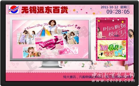 借助高清顯示設備,將視頻、圖片、文字等元素進行組合,在超市、商場進行商品促銷,是逐漸興起的新的促銷手段。其基本實現方式是:在超市、商場合適的場 所,比如公共過道、重要貨架、電梯口、收銀臺等,放置大屏幕彩電或者液晶顯示器;通過循環滾動的方式不斷播出某種商品的促銷信息,比如本商品的功能介紹、 優惠信息、服務保障等等,以圖文并茂的形式引起消費者的注意,加深消費者對本產品的了解,進而促使消者購買。