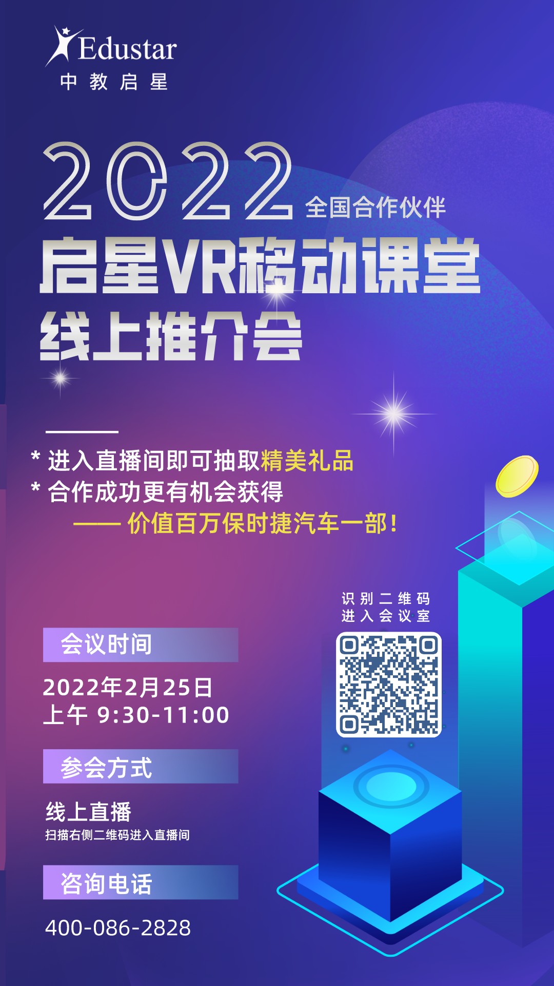 2022年為更好地協(xié)同開(kāi)展項(xiàng)目合作,中教啟星安排召開(kāi)“中教啟星2022全國(guó)合作伙伴-啟星VR移動(dòng)課堂”線上推介會(huì)專題活動(dòng)。