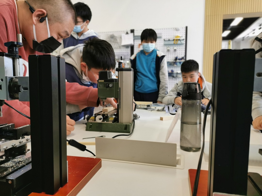 實(shí)際上,這節(jié)課程還包括前置課程,是讓初一的學(xué)生們親自動(dòng)手通過機(jī)床和電腦軟件+3D打印兩種方式制作圭表。由于課程時(shí)長(zhǎng)限制,這部分內(nèi)容在課例展示中只能以視頻的方式展示。