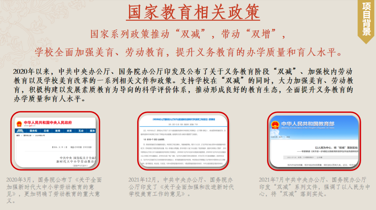 緊接著在文化強國、文化自信和講好中國故事的時代背景下,結合習近平總書記“一個博物院就是一所大學”的講話精神,以及近年教育“雙減政策”下,中小學對傳統文化綜合素質實踐課、勞動課、美育課以及課后三點半教學等校內教育需求,故宮博物院故宮學校為進一步落實“引導博物館與學校共同推進教育資源共建,建構中華優秀傳統文化傳承創新體系”的國家政策,特開展了青少年博物館在線教育項目,結合每件藏品的深刻內涵設計成課程,傳播真實、可信、富有情感和生命力的知識內容。