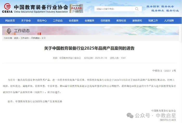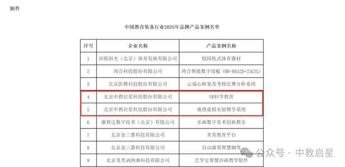 熱烈祝賀中教啟星教育產品入選中國教育裝備行業2025年品牌產品案例!