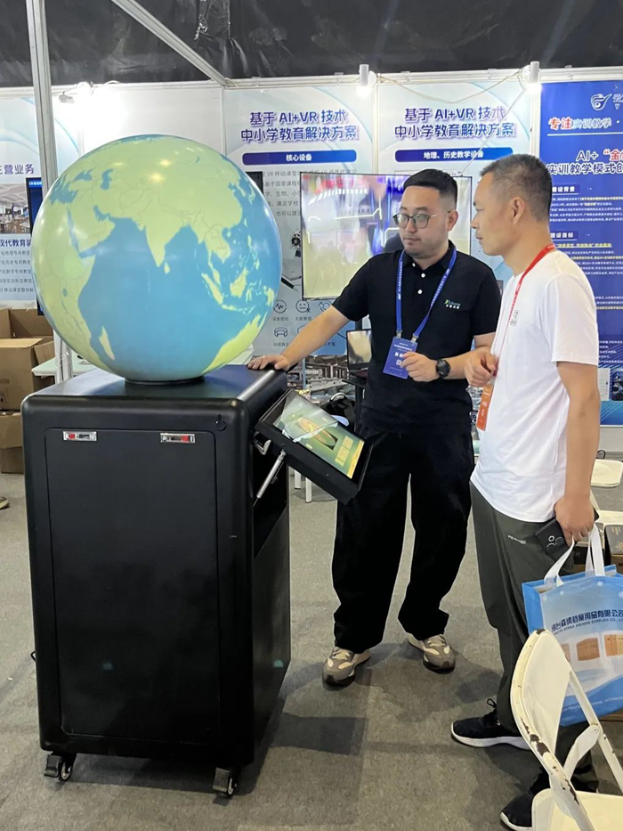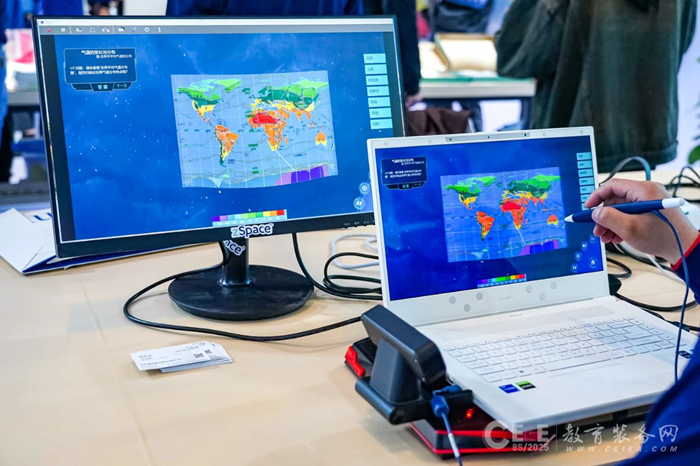 此次展示的數(shù)字化地理教室中,數(shù)字星球系統(tǒng)融合了球幕投影、多媒體交互、數(shù)字化資源等多種技術(shù),將地球、宇宙等宏觀地理知識(shí)以動(dòng)態(tài)、立體的形式呈現(xiàn)在球形屏幕上。教師能夠通過系統(tǒng),全方位、多角度展示地球的地理現(xiàn)象、時(shí)空演化、大氣環(huán)流等知識(shí),打破了傳統(tǒng)平面教學(xué)的局限,以極具直觀立體的視覺效果,激發(fā)學(xué)生對(duì)地理知識(shí)探索的熱情,助力他們更深入地理解宏觀地理現(xiàn)象和原理。