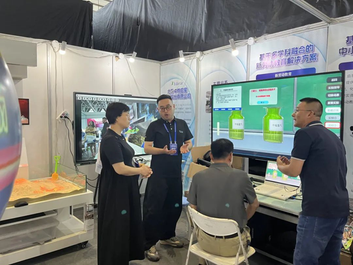 展會(huì)期間,中教啟星的展位前人潮涌動(dòng),來(lái)自全國(guó)各地的教育部門領(lǐng)導(dǎo)、學(xué)校校長(zhǎng)、教師以及教育行業(yè)從業(yè)者紛紛駐足參觀、體驗(yàn)�,F(xiàn)場(chǎng)設(shè)置的互動(dòng)體驗(yàn)區(qū),吸引了眾多觀眾積極參與,大家親身體驗(yàn)了數(shù)字化地理教室和科學(xué)教育 VR 創(chuàng)新教室?guī)?lái)的全新學(xué)習(xí)方式,對(duì)中教啟星的產(chǎn)品和解決方案給予了高度評(píng)價(jià)。
