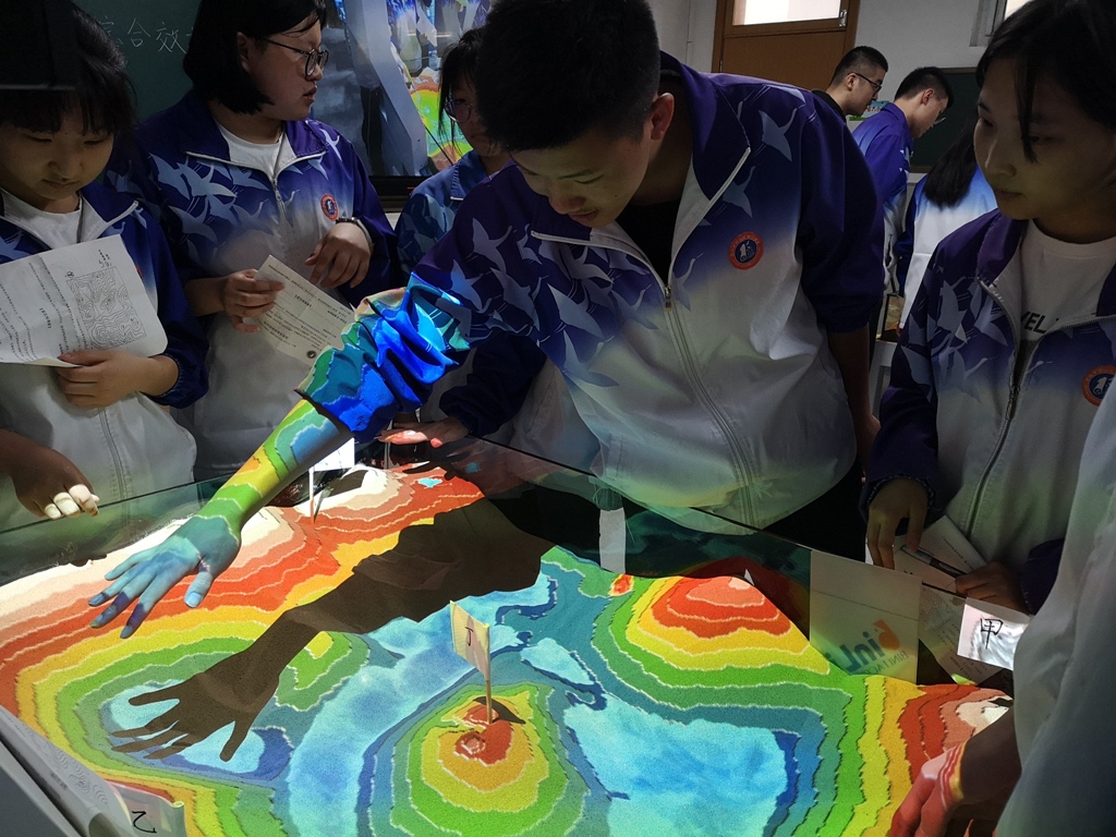 地理AR沙盤是一款適用于初高中地理教學的數字化投影沙盤。采用AR增強現實、傳感等技術,即時識別互動沙盤形態,依據沙盤變化,將不同的地勢地貌形態通過虛擬投影真實展示。