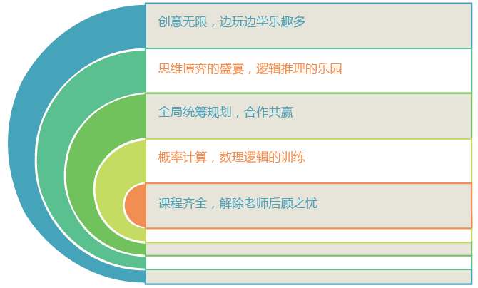 博弈數學教育課程教學活動主要面向7-18歲青少年,通過體驗式活動教學游戲,培養青少年的數理邏輯、博弈思維、團隊合作、獨立思考、創新、自定義及設計、溝通表達等綜合能力。活動課程采用活動體驗式教學方法,這種方法強調學生為主,興趣入手,讓學生通過興趣驅動來學習,在快樂中學習,在快樂中理解知識,在快樂中尋找自己的答案。
