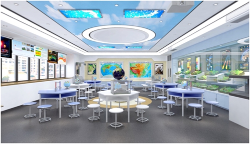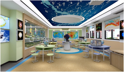 基于數(shù)字化與虛擬現(xiàn)實(shí)技術(shù)的創(chuàng)新型地理專用教室,通過數(shù)字星球系統(tǒng)、交互地圖教學(xué)系統(tǒng)、語音立體地形圖、地圖圖層學(xué)習(xí)箱、地理實(shí)驗(yàn)活動套裝、地理全息教學(xué)系統(tǒng)、地理AR沙盤系統(tǒng)、寰宇地理VR教學(xué)系統(tǒng)、“地球的演化”沉浸式VR探索系統(tǒng)等專業(yè)設(shè)備可以動態(tài)立體地再現(xiàn)自然地理和人文地理的現(xiàn)象與過程,實(shí)現(xiàn)地理教學(xué)“從平面到立體”和“從靜態(tài)到動態(tài)”的跨越,為各種長時間、大尺度、多因素的自然和人文地理現(xiàn)象演變的展示提供了可能,利用數(shù)字化與虛擬現(xiàn)實(shí)技術(shù),創(chuàng)設(shè)三維空間學(xué)習(xí)環(huán)境,能夠?qū)崿F(xiàn)立體展示以及從全球、整體、綜合的角度探索宇宙空間環(huán)境和地球環(huán)境,可以讓學(xué)生真正參與到學(xué)習(xí)活動中。通過對客觀環(huán)境進(jìn)行模擬,與實(shí)際學(xué)習(xí)情境高度融合,能夠全方位調(diào)動學(xué)習(xí)者的視覺、聽覺、觸覺等,給學(xué)生前所未有的學(xué)習(xí)體驗(yàn),利用沉浸式、趣味式、交互式的方法,讓學(xué)生真正的沉浸在地理環(huán)境之中去學(xué)習(xí)地理,在情景體驗(yàn)中建構(gòu)知識,提高教學(xué)效率,推動教學(xué)改革。