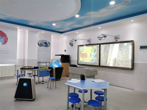 羿飛數字化地理教室從培養學生學習興趣開始,通過“眼觀、耳聽、手做、腦思”的方式,將地理知識一點點拆解開,讓學生在理解的基礎上進行記憶。以青島市城陽區白云山學校數字化地理專用教室為例,看看學生是如何在信息技術的引領下,在“玩”中學習地理。