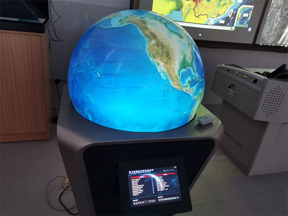 多媒體超半球互動球幕投影演示儀,這個發光的半球大有來頭,從地殼地心的構造,到地球各大洲大洋的信息,再到宇宙中的天體、星體的模擬,幾乎濃縮了所有的地理教材知識。在球形曲面幕上三維動畫展示,模擬演示各種地理現象。