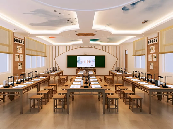 羿飛借助先進桌面智能超短焦微投、多媒體教學設備等共同打造數字化書法專用教室解決方案,徹底解決了師資短缺、教學資源不匹配、書法教學困難、學習興趣不高等諸多書法教學難題,為書法教育走進課堂的推行普及掃除障礙。