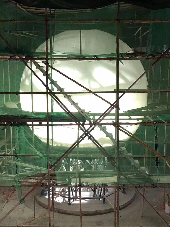 羿飛教育首次挑戰(zhàn)了如此巨大尺寸的內(nèi)投球幕。以往在球幕制作上的經(jīng)驗(yàn),無法在這個(gè)產(chǎn)品上復(fù)制。面對這一挑戰(zhàn),羿飛教育的工程師們經(jīng)過無數(shù)次的討論與試驗(yàn),最終制定出一套全新的加工方案,確保了球幕的精確制作。