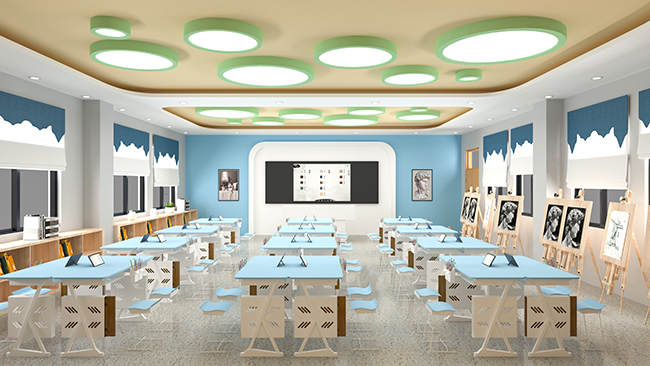 翰墨派美術(shù)教室主要是在基于傳統(tǒng)美術(shù)(國畫)教學(xué)的的基礎(chǔ)上,進行數(shù)字化教室的軟硬件設(shè)施建設(shè),教室的建設(shè)工作主要是提高美術(shù)教學(xué)的效率,解決目前學(xué)校缺乏師資的難度,為學(xué)校建設(shè)能同時容納多名學(xué)生進行藝術(shù)教育的高端智慧美術(shù)教室。