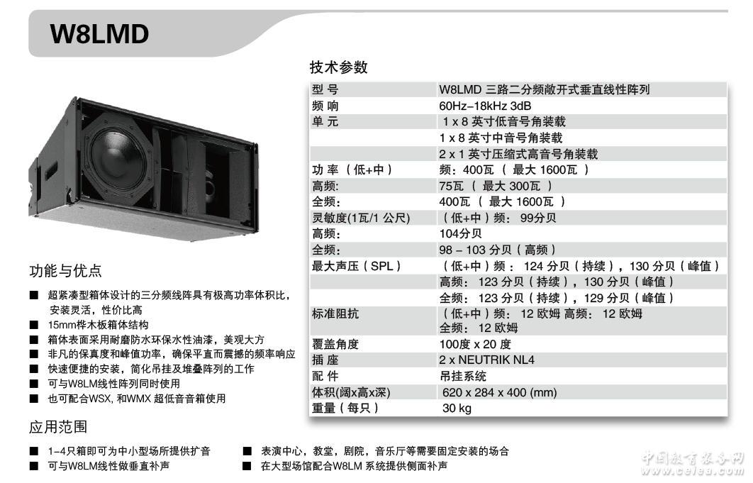 產(chǎn)品詳細(xì)介紹1-4只箱媽可為中小弄場(chǎng)所提供擴(kuò)音,表演中心,教堂,劇院,音樂(lè)廳需要固定安裝的場(chǎng)合,可與W8LM線性做垂直補(bǔ)聲,在大型場(chǎng)館配合W8LM系統(tǒng)提供側(cè)面補(bǔ)聲。