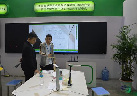 吉星今年展會主推的產品是:無線智慧互動終端;主推的解決方案是:智慧課堂方案、書法方案、實驗室方案,其次微課、幼教、創客等。解決了多臺互動終端互聯的技術難題,多臺互動終端方案在課堂教學中能夠更好的促進師生之間和學生之間的互動,通過多臺無線互動終端互連,可以同時將多名學生的畫面展示在大屏投影上,促進學生之間的學習交流;老師可以通過多臺無線互動終端實時觀察每一位學生的學習情況,達到一對多的輕松教學。