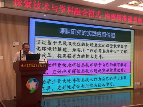 5月31日“探索技術與學科融合模式,構建精準課堂教學新常態”信息化成果研討會在北京石景山區實驗小學舉行,教育信息技術領域專家、石景山區教委、石景山分院領導、課題組代表及一線骨干教師蒞臨會議現場,共同見證智慧校園建設及現代信息技術手段下開展的新課程改革發展成果,吉星作為課題《基于無線微錄儀的課堂教學創新應用研究》的主辦方,參加本次活動并作課題組經驗分享。