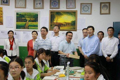 ▲中央宣傳部副部長(zhǎng)、中央網(wǎng)信辦主任莊榮文參觀吉星未來(lái)美術(shù)教室