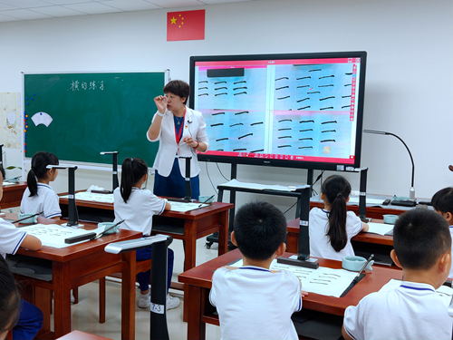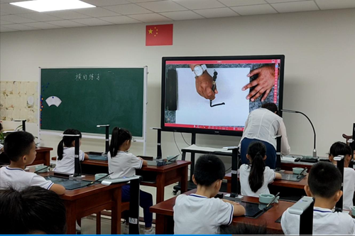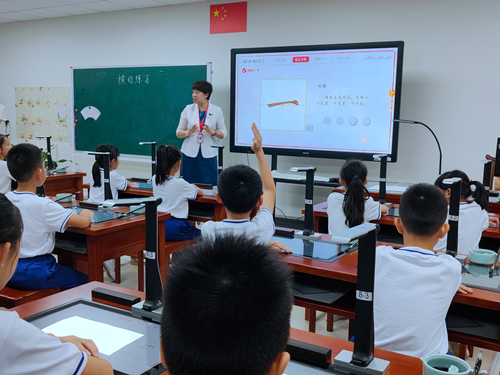 在6月下旬的書法特色教育創(chuàng)建與管理觀摩學(xué)習(xí)活動(dòng)中,老師們觀摩了沙面小學(xué)姚丹校長(zhǎng)執(zhí)教的書法示范課《橫的練習(xí)》,切身感受到吉星智慧書法課堂的魅力,體驗(yàn)科技與書法的結(jié)合。