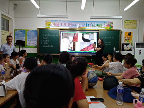 炎炎夏日,驕陽似火,全縣近四分之一的老師克服高溫酷暑的困難前來學習,培訓現場座無虛席。走進不同的學校,不同校區(qū),不同的培訓現場扔展現出一致的火爆場景。