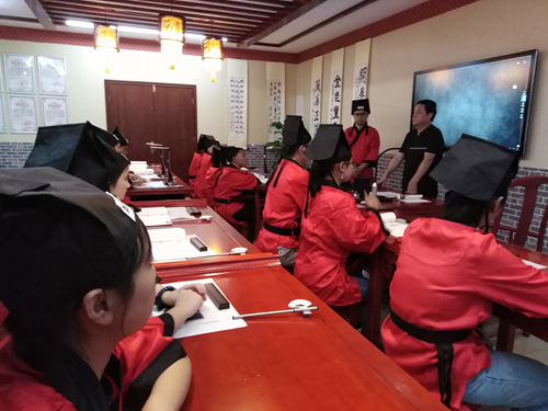 在武老師專業的書法示范教學和講解下,主課堂的學生與分會場的老師一同書寫。分會場的老師通過未來遠程書法系統,可清晰地觀看武老師和學生書寫的全過程。