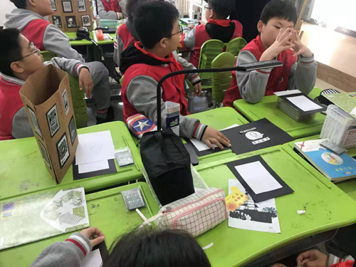 小組之間互相交流討論,每個(gè)小朋友發(fā)揮著各自的想象力。美術(shù)課再也不是傳統(tǒng)的埋頭創(chuàng)作,而是學(xué)生之間創(chuàng)作思路的碰撞、成果的分享。