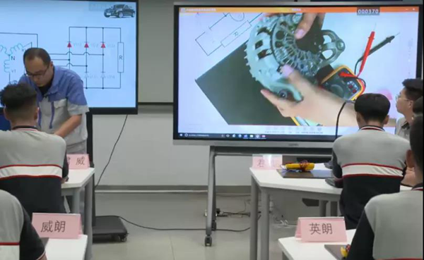 在強(qiáng)交互實(shí)訓(xùn)課堂中,跨區(qū)域教學(xué)是重點(diǎn)。在展會(huì)上,工作人員會(huì)演示相隔距離的異地教學(xué),展示不同時(shí)間空間的同步課堂。