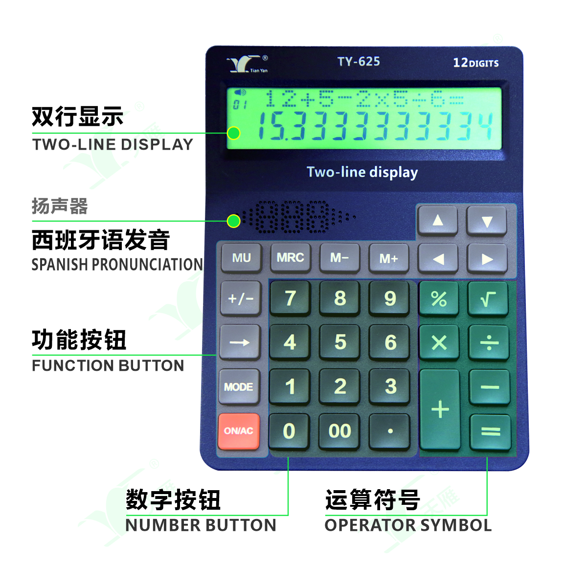 TY-625西班牙語發(fā)音雙行顯示臺(tái)式計(jì)算器