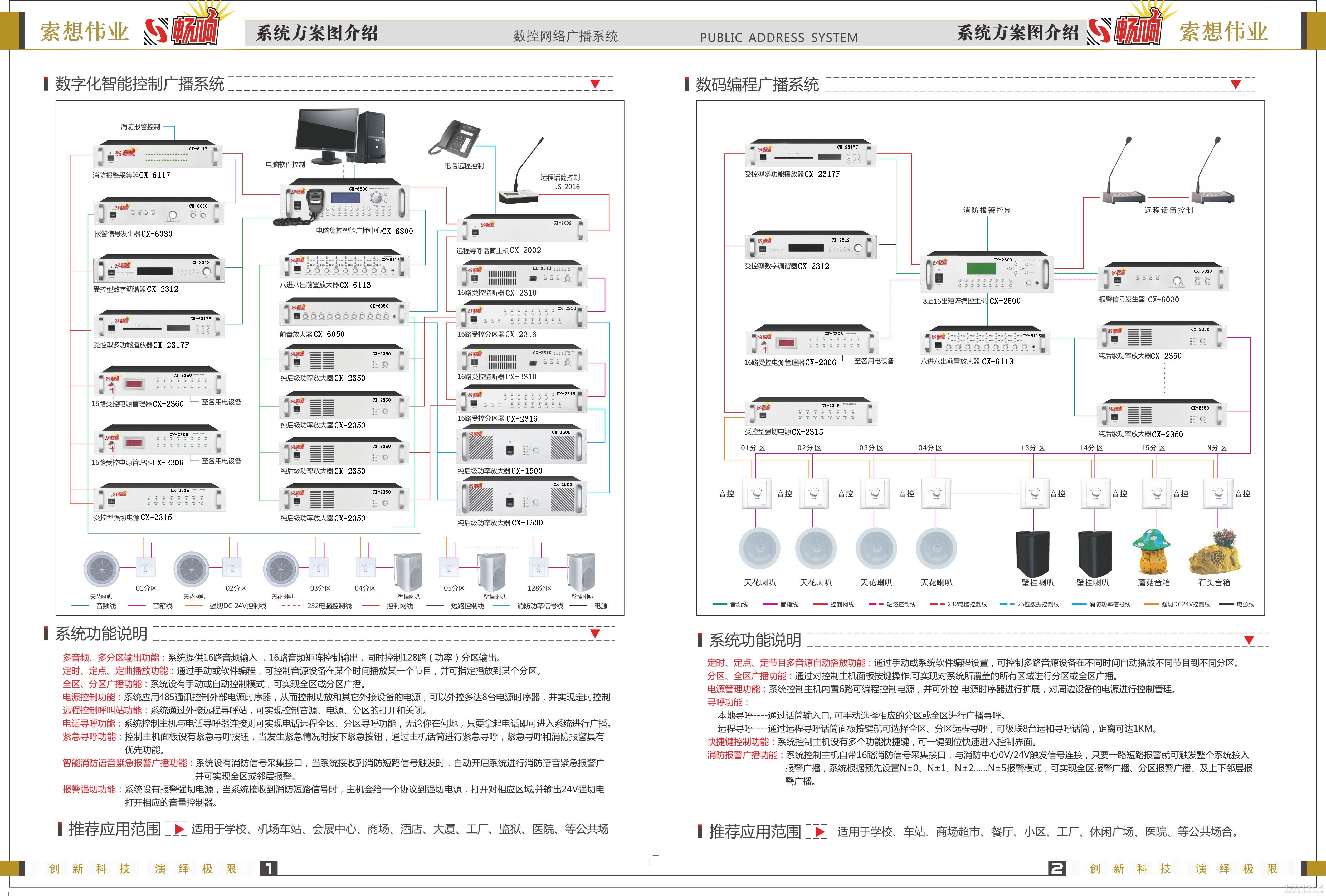 公共廣播系統(tǒng)由深圳索想偉業(yè)科技有限公司13927490671劉輝(經(jīng)理)WWW.SUOXIANGWEIYE.COM專業(yè)提供公共廣播系統(tǒng)介紹:
