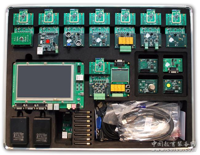物聯網創新套件實驗系統增強版適合于支持無線傳感網絡、物聯網工程、嵌入式系統原理與應用、單片機技術和物聯網中間件技術等系列課程的實驗教學。系統包含多種傳感器模型和無線組網模式,硬件資源由8個無線通信模塊、8個傳感器模塊、8個電源板模塊、Cortex A8雙核多功能嵌入式網關和其他配套設備組成。軟件資源包含無線傳感器網絡軟件、sniffer軟件、嵌入式網關軟件與PC Server端軟件等。實驗資源則采用由簡單到復雜的設計模式,引導學生掌握物聯網開發要領,為物聯網工程應用打下堅實的基礎。學生通過學習相關的物聯網實驗,實現多種物聯網構架,熟悉和掌握物聯網的構成及實際應用。