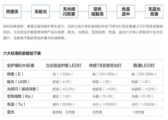 在護(hù)眼燈具從照度到藍(lán)光危害的六大硬性指標(biāo)上,立達(dá)信相關(guān)產(chǎn)品性能遠(yuǎn)遠(yuǎn)高于國家標(biāo)準(zhǔn),并在使用中保持長久的能效。