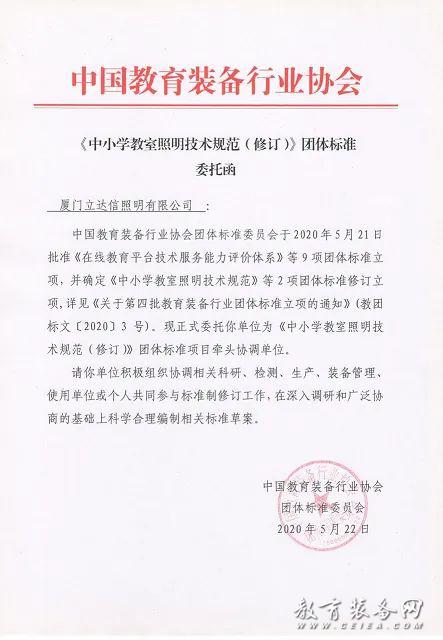 受中國教育裝備行業協會委托,由立達信作為《中小學教室照明技術規范》標準修訂項目牽頭協調單位。為按時高質量完成標準修訂工作,現向社會各界公開征集參編單位,誠邀各教育廳、教育局、教育裝備部門、體衛藝、高校、認證機構、檢測機構及具備研發生產實力照明企業參加,更廣泛征集、了解教育照明發展需求,共同助力教育照明標準提升,造福廣大師生。