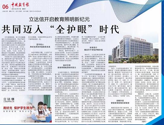 近日,《中國教育報》專題報道立達信教育照明。文章中詳細介紹了立達信教育照明品牌的發展歷程,助力國家近視防控工作的不懈耕耘,以及在智慧教育領域的探索與實踐。
