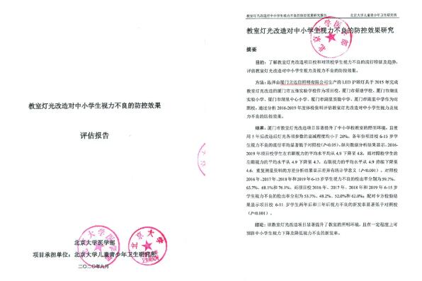 最經(jīng)典的應(yīng)該是我們第一所整校改造案例廈門五緣實(shí)驗(yàn)學(xué)校。改造五年來(lái),經(jīng)權(quán)威機(jī)構(gòu)檢測(cè),各項(xiàng)指標(biāo)依然優(yōu)于國(guó)家標(biāo)準(zhǔn)。更可喜的是,由教室照明國(guó)標(biāo)主起草單位北京大學(xué)兒童青少年衛(wèi)生研究所(國(guó)標(biāo)GB7793-2010《中小學(xué)校教室采光和照明衛(wèi)生標(biāo)準(zhǔn)》、國(guó)標(biāo)GB40070-2021《兒童青少年學(xué)習(xí)用品近視防控衛(wèi)生要求》主起草單位)出具的報(bào)告顯示,立達(dá)信健康光環(huán)境的改造在一定程度上可預(yù)防中小學(xué)生視力下降及降低視力不良的新發(fā)率。統(tǒng)計(jì)數(shù)據(jù)顯示,不同年齡段近視率下降了5.9-33.3%不等。