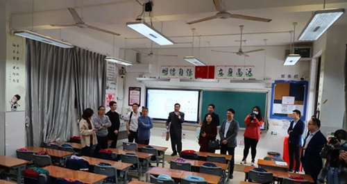 五緣二小老師向調研組演示立達信極智系列教室燈的使用,調研組在體驗過后紛紛表示贊美。他們認為,關注學生健康的同時也要關注老師健康,極智系列教室燈恰好考慮到了這一點,才會如此受大家喜愛。