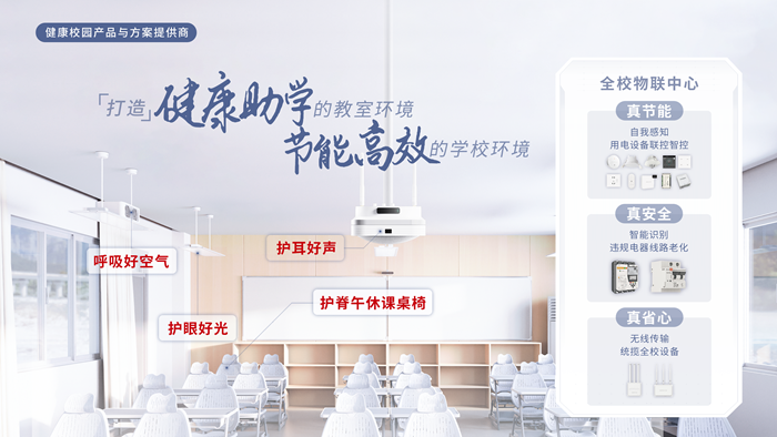 項目創新性提出“光-聲-氣-智”四維協同的健康教室環境優化方案,為師生營造“好光、好聲、好空氣”的健康教室環境和節能高效的學校環境,助力孩子學習更專注、學校管理更便捷高效,推動教育優質均衡發展。