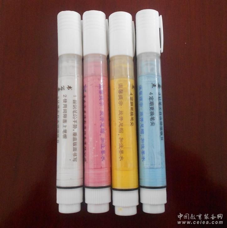 產(chǎn)品詳細介紹無塵液體粉筆系列:其特點是環(huán)保無塵、易擦易寫,共有白、紅、黃、藍、綠、黑六種顏色,將液體粉筆墨水灌裝在板書筆內(nèi),在電子白板或改造后的墨綠板上書寫。字跡清晰、書寫流暢、摩擦力小,可減輕教師的書寫疲勞;擦拭無塵、輕松,可提高教學(xué)質(zhì)量。此類液體粉筆,學(xué)校在使用前只需要投入少量的資金,在不改變原有教學(xué)板性質(zhì)的情況下簡單的改造黑板(即在原有黑板上粘貼一張綠膜),就可以正常使用該產(chǎn)品。該膜不僅費用低廉,且使用壽命可長達5年,維修簡單。這樣不僅降低了學(xué)校的使用成本,還能改善學(xué)校的教學(xué)環(huán)境。 |