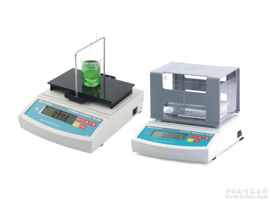 固體測量步驟: ①將產品放入測量臺,測空氣中重量,按ENTER鍵記憶。 ②將產品放入水中測水中重量,按ENTER鍵記憶,顯示密度值。 液體測量步驟: ①將盛有樣品的燒杯放于測量放置板上,扣除掛鉤的重量。 ②用掛鉤將標準砝碼放入待測液體中并掛置于測量架上,即顯示為密度值。 標準配件: ⑴主機一臺、⑵鑷子一支、⑶溫度計一支、⑷砝碼一個、⑸防風防塵罩一套、⑹固體水槽一個、⑺固體測量臺一件、⑻測顆粒裝置一套、⑼測浮體配件一套、⑽液體測量放置板一塊、⑾液體測量支架一個、⑿DE-20A標準液體測量組件一套、⒀電源變壓器一個 選購附件:⑴DE-40打印機、⑵DM-20B防腐蝕性液體測量組件、⑶DM-20A標準液體測量組件