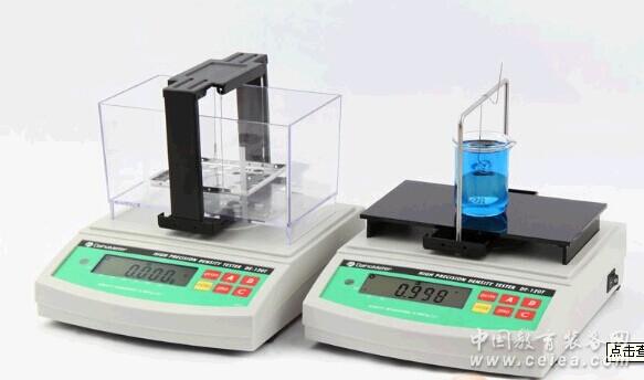 液體測量步驟: ①將盛有樣品的燒杯放于測量放置板上,扣除掛鉤的重量。 ②用掛鉤將標準砝碼放入待測液體中并掛置于測量架上,即顯示密度值。 吸水性產品測量步驟(多孔性物質產品): ①將產品放入測量臺,測空氣中重量,按ENTER鍵記憶。 ②將產品處水處理后,放入測量臺測防水處理后空氣中的重量,按ENTER鍵記憶。 ③將產品放入水中測防水處理后的水中重量,按ENTER鍵記憶,顯示密度值。