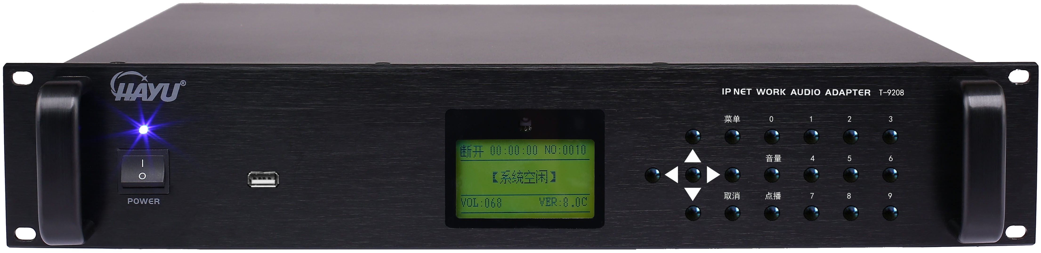 產品詳細介紹標準機柜式設計,黑色氧化鋁拉絲面板,人性化的抽手,考究的工藝,盡顯高檔氣質;高亮LCD顯示屏,人機操作使用面板操作鍵盤,人性化人機操作界面; 音頻采用硬解碼形式,內置硬件編解碼芯片,實現本地實時信號采集功能以及音頻解碼功能; 具有接收廣播呼叫、廣播功能:通過電腦可對單個或多個IP終端、分區、全區呼叫; 面板集成19位操作按鍵,可點播服務器中音頻文件,可輕松控制節目的快進、快退,播放、暫停及書簽設置;具有順序、循環等多種播放模式; 終端集成八分區輸出(70V/100V,音頻信號),可任意選擇輸出通道,可手動自動控制各分區開關; 具有1路本地話筒、1路本地線路輸入接口、1路線路輸出接口,自帶2*20W功放,能外接定阻音箱;支持DHCP自動獲取IP地址; 終端具有遠程優先功能,能實現自動強插功能,實現分級優先、緊急播音等; 終端內置智能電源管理功能,能外接周邊設備,如功放等設備,根椐聲音自動開啟或關閉外接功率放大器的電源; 具有功放后控接口:具有功放軟開啟關閉控制接口,能外接多臺帶后控的大功率功放,無需配置電源時序設備,可直接控制多臺大功率功放電源開關; 具有三級信號優先功能,高級別可打斷低級別的廣播; 標配2路10/100M RJ45網絡交換機接口,接口無輸入輸出之分; 終端機能任意設置待機時間長短,時間可從:1—99分鐘之間任意設定,用戶可根據各個分區具體情況,來任意設定在任務結束后,多長時間關閉功放,以方便用戶舉行各類活動; 具有終端饋送功能,可直接通過終端本地操作或通過IP廣播軟件操作將能將任意一個終端的聲音通過網絡傳送到其它指定的一個或多個終端; 標配1路USB接口,支持U盤播放和錄音,能將本地的內容進行實時錄制; 支持全雙工雙向對講,自帶回聲消除功能; 可選配TF卡模塊,可實現斷網自動打鈴功能,能定時將服務器中的定時廣播任務自動更新到TF卡中,以保證在斷網時打鈴為最新的定時廣播任務; 可選配2A-24V強切模塊,可控制打開強切音量開關; 可選配紅外遙控器,不但可通過面板操作按鍵操作,還可通過遙控器進行操作; 具有1路RS232串口接口,RS232串口可外控電源時序器、分區控制器、24V強切電源等設備。2路RJ45網絡接口,1路線路輸入,1路話筒輸入,1路線路輸出,1路左右聲道定阻接口,1路模擬備份定壓輸入接口,1路24V強切電源輸出口,1路功放后控接口,1路220V外控電源接口,1路220V電源。可接4臺功放8分區。 |
