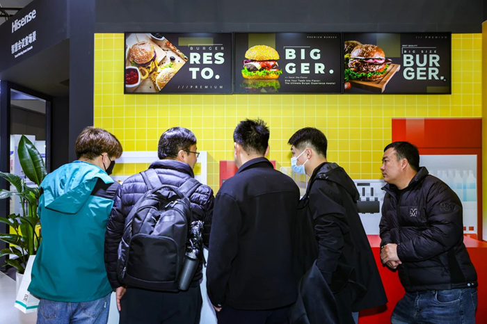 針對商業零售場景,海信商用顯示在現場搭建起汽車穿梭餐廳場景,室外區域采用戶外高亮Mini LED顯示屏,解決了傳統戶外液晶屏亮度不夠、對比度差、視角小、易黃化、壽命短、低溫下響應速度慢等問題,可以更加清晰的展示廣告信息,清晰展示廣告信息,提升零售門店廣告信息的觸達率;在室內,采用3塊43英寸海信數字標牌產品,極窄邊框設計,美化門店形象,7*24小時的長時間穩定運行能力,滿足門店的長時間運維。且具備網絡安全二級等保認證,避免網絡攻擊和非法投屏,保護商家利益。借助海信信發智控CMS系統,實現各類零售場景的統一管理、統一運維,更能提升顧客體驗,吸引客流。
