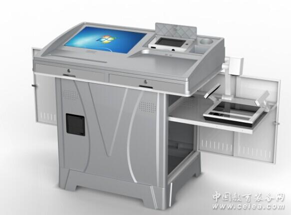 產品詳細介紹一、班班通講桌 型號:FK520 詳細參數如下: 1、材料要求:塑鋼桌面、冷軋鋼板桌體、防潮防銹塑鋼底腳板; 2、外觀要求:正前方有倒V型設計,方便印校徽,并與塑鋼底板腳的V型呼應;扶手分層設計,即美觀結實,又加固強度;整體外觀流線型設計,無菱角,保護師生安全; 3、外置功能要求:并排一個塑鋼鍵盤抽屜,一個塑鋼抽儲物抽屜;桌面采用流線式設計,留有兩個外置USB接口、水杯位、粉筆盒位、防筆滑落槽等; 4、內置功能要求:桌面超大的中控儲物盒,可放置中控面板、鼠標、筆記本電腦接線或便攜展示臺等;桌體內可內置19寸液晶顯示器,仰角≥15度,內嵌5MM鋼化防爆玻璃; 可內置側抽拉展示臺抽屜,承重≥8公斤; 5、尺寸要求:按中小學老師的人體力學設計的漸寬式扶手, 講桌:長:1100mm寬:690mm高:1000mm; 6、安裝防鼠要求:桌體采用拆裝設計,塑鋼底板設計了兩個有防鼠網的過線孔。 7、防潮、防水、防銹要求:為防止桌面水杯的水或清潔桌面的水,以及潮濕天氣對講桌底腳板的腐蝕,所以桌面和底腳板均采用塑鋼材料; 8、專利保護要求:以上產品設計,不得侵犯第三方知識產權; 9、安全要求:講桌需要通過國家3C強制認證;省級質量檢測部門的檢測; 10、生產廠家資質要求:生產廠家要通過ISO9001、ISO14001認證、SGS認證、CE(CPC)認證; 11、教育行業專屬要求:生產廠家要是省級和國家級教育協會會員。
